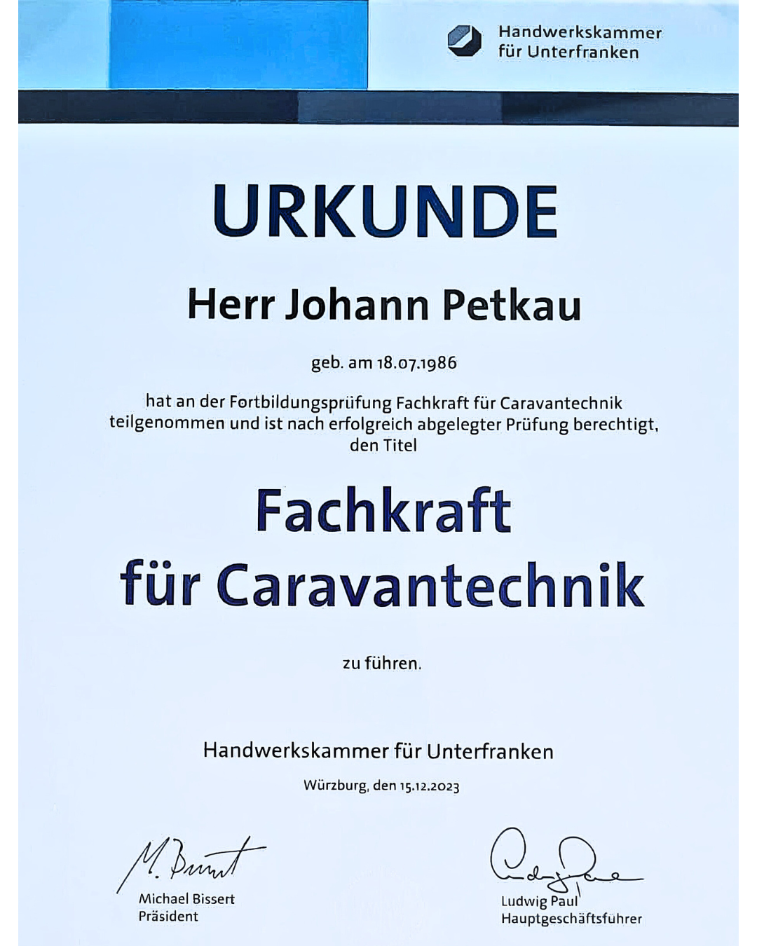 Mehr erfahrenWir arbeiten mit führenden Herstellern und Servicepartnern der Caravan- und Wohnmobilbranche zusammen. So stellen wir sicher, dass Ihr Fahrzeug nach Herstellervorgaben geprüft und repariert wird.