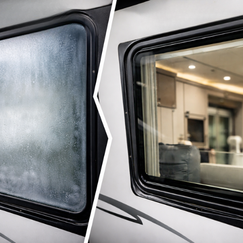 Wasserschaden, beschädigte Außenwand oder milchige Wohnmobil Fenster