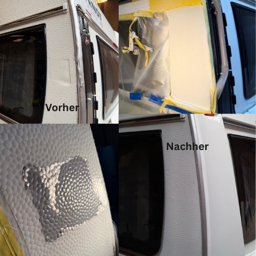 Mit der HBC Reparaturmethode lassen sich viele Schäden an Wohnwagen und Wohnmobilen gezielt instand setzen ohne komplette Seitenwände zu ersetzen. Die Oberfläche wird originalgetreu wieder hergestellt und die Struktur bleibt erhalten.